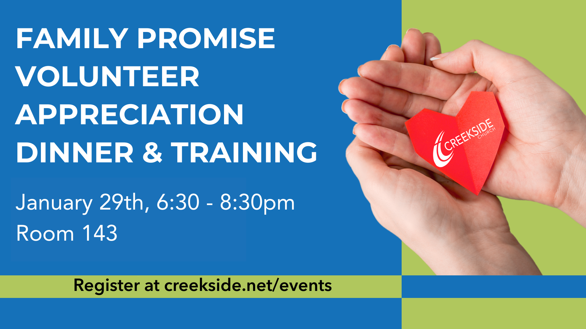 29JanFamily Promise Volunteer Appreciation Dinner and TrainingThursday, January 29, 2026, 6:30 PM - 8:30 PM