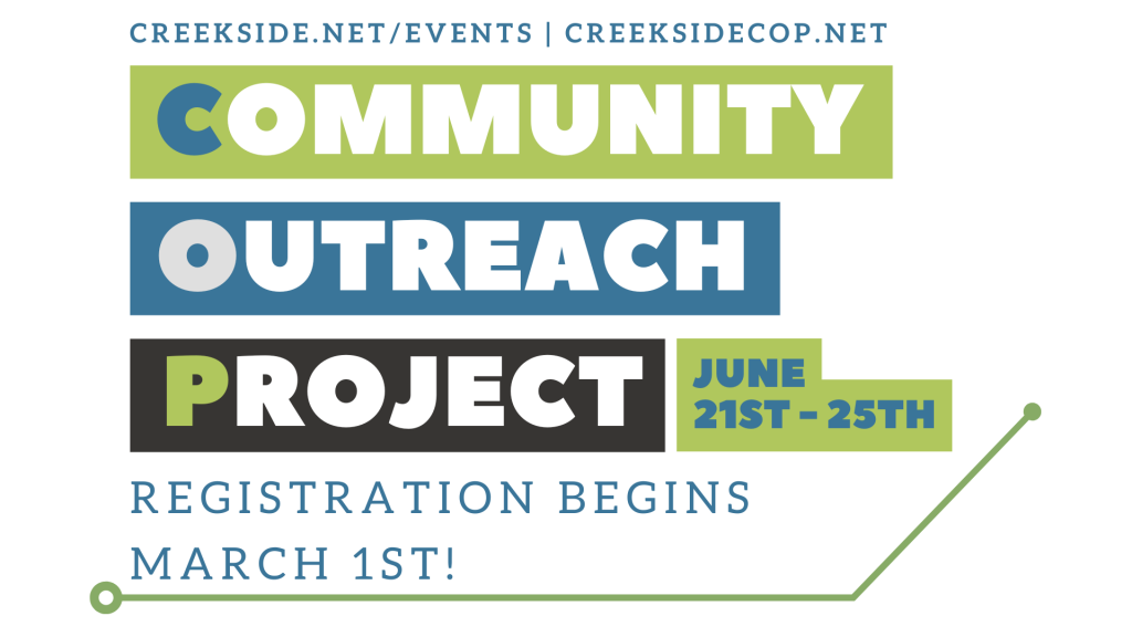 We are excited to announce that it is time to sign up for COP 2026! COP is an unforgettable week of serving our community, worshipping God, and growing closer to one another through fun and fellowship. Sign your student up to participate (6th-12th grades) and/or sign yourself up to serve in some capacity for COP. Please clink the link above for more information and to register!