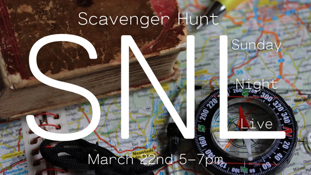 You will not want to miss this! Sunday, March 22nd is the Sunday Night Live Scavenger Hunt! Come be a part of a fast-paced, team-based night of fun. Please arrive at the gym by 5:00pm sharp.